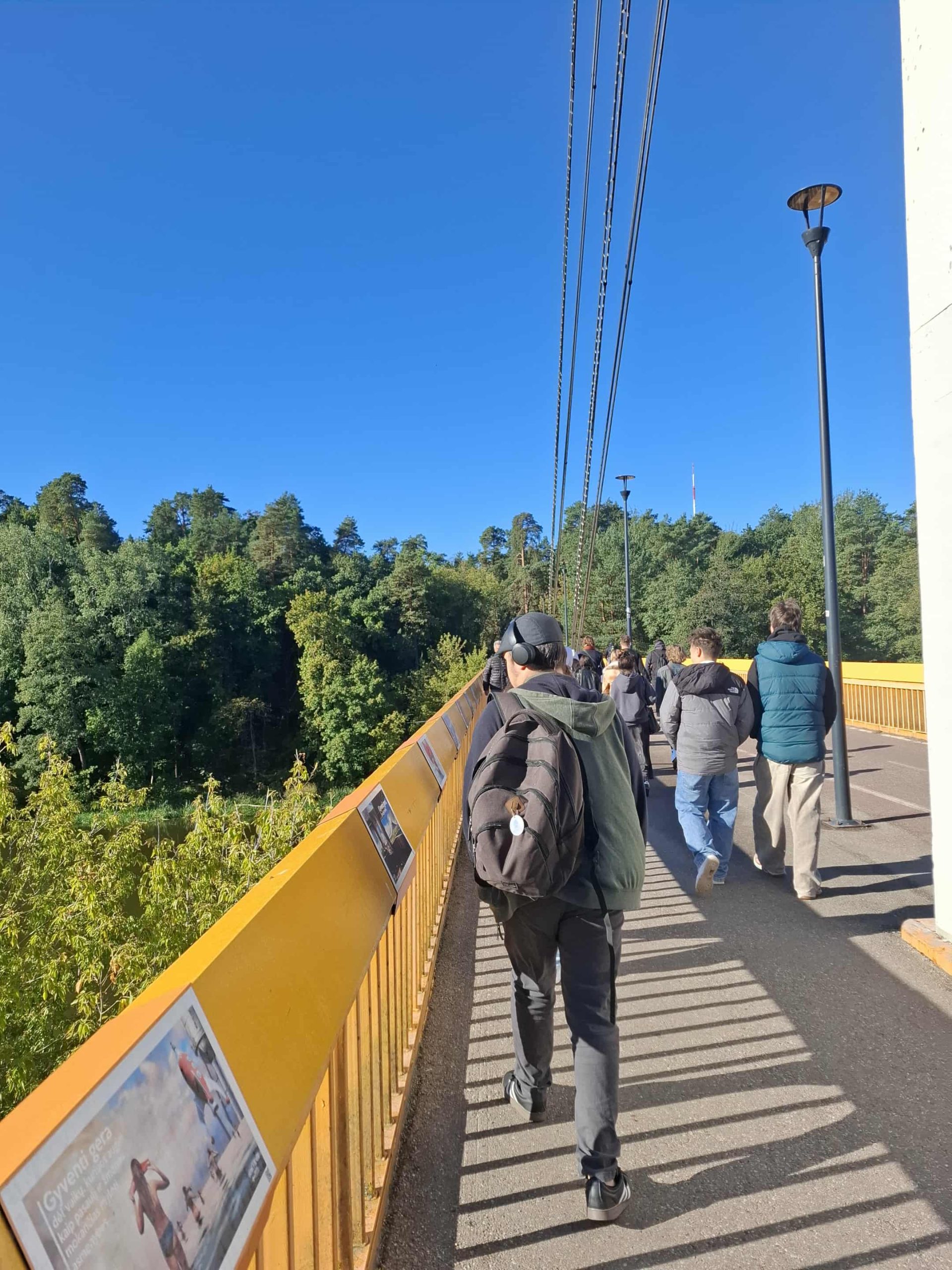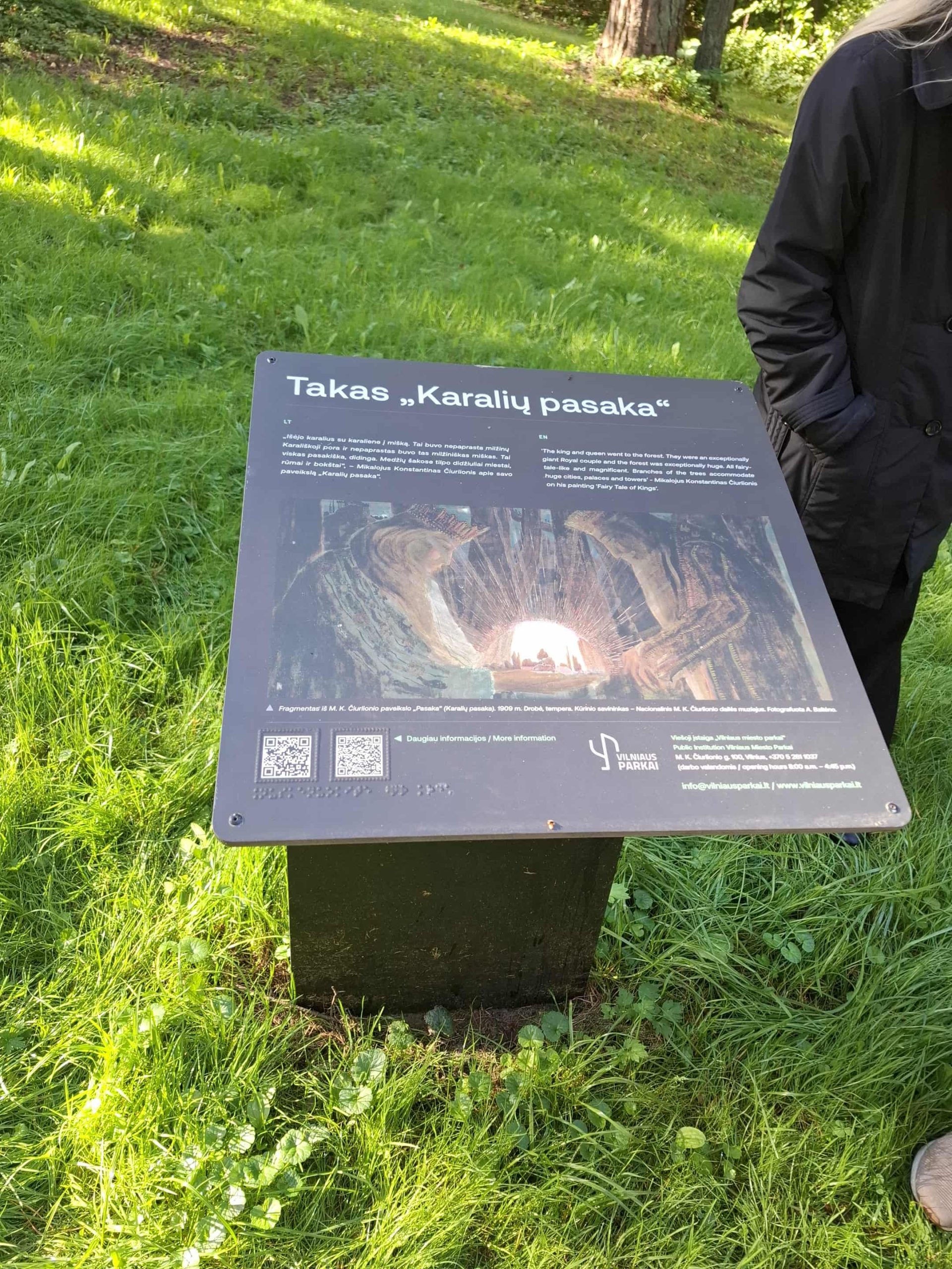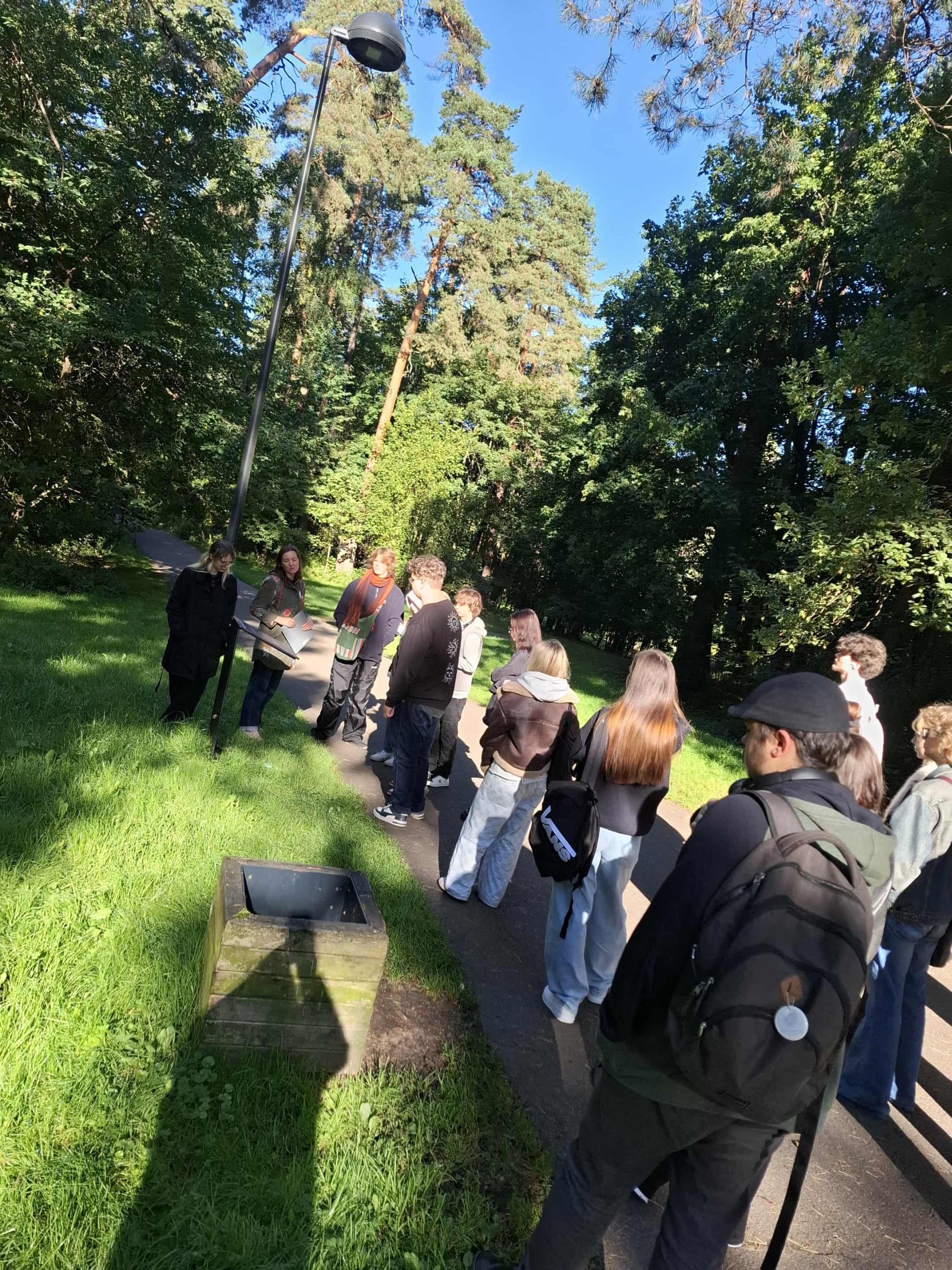 4a, 2a ir 3g klasių mokiniai vėsoką, bet saulėtą rugsėjo 24-osios rytą keliavo į Vingio parką, kur integruotoje anglų ir lietuvių kalbų pamokoje aptarė M. K.Čiurlionio kūrybą (pamokos planas sukurtas pagal ,,Vilnius yra mokykla“ platformos medžiagą). Parko takai Vilniaus miesto tarybos sprendimu pavadinti kompozitoriaus ir dailininko darbų vardais: „Bičiulystė“, „Rytmetis“, „Karalių pasaka“, „Ramybė“, „Tiltai“ ir kt. Mokiniai tyrinėjo simbolius, ieškojo sąsajų su gamta ir muzika, dalijosi įspūdžiais ir aktyviai diskutavo tiek lietuviškai, tiek angliškai. Keliaudami nuo vienos stotelės iki kitos atsakinėjo į klausimus, susijusius su matytu paveikslu. Pamokos pabaigoje grupėse diskutavo apie menininko gyvenimą ir kūrybą. Mokinių refleksija: