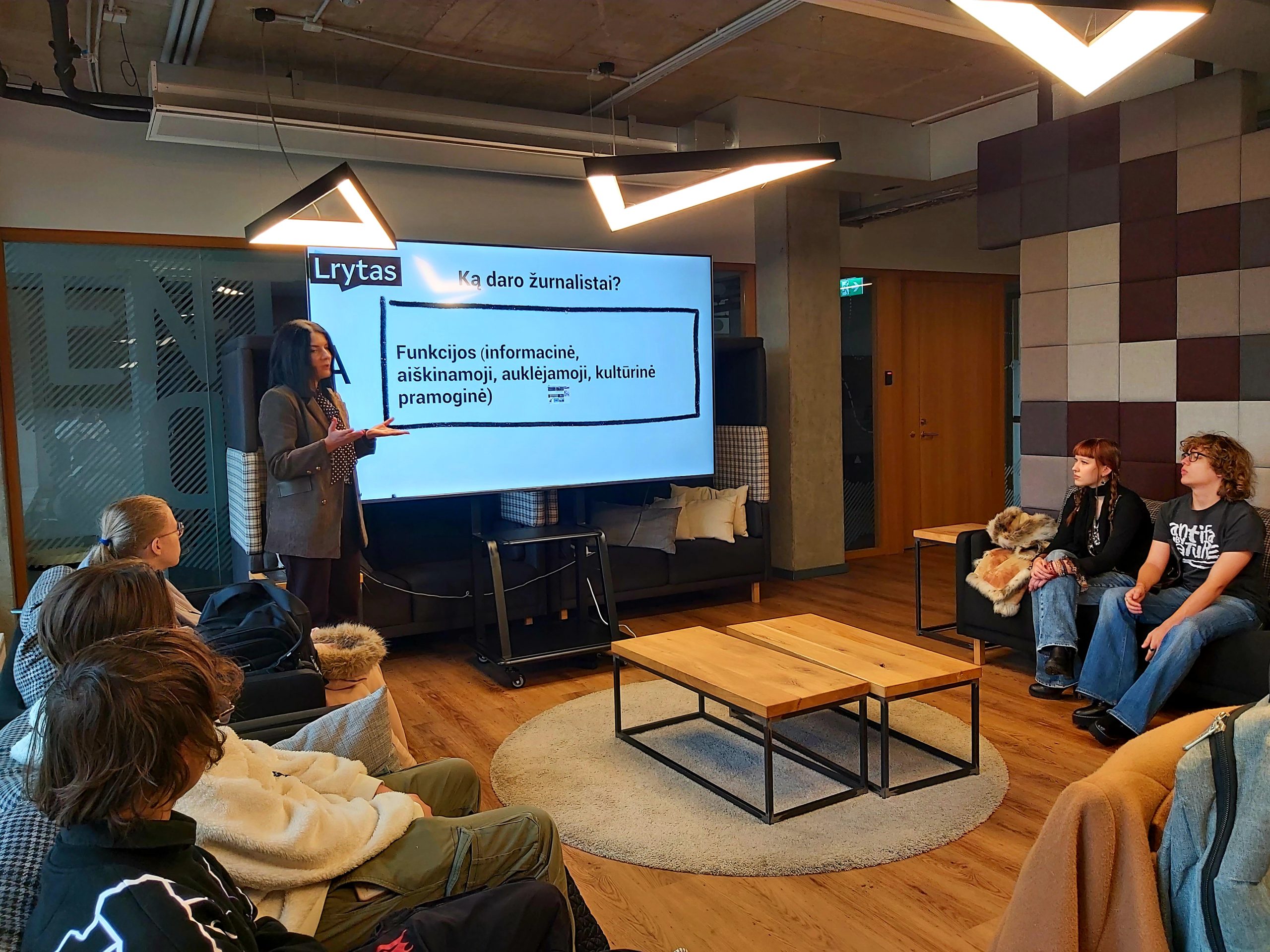 Redakcijoje mus pasitiko itin šiltai ir nuoširdžiai. Pamoką profesionaliai vedė net dvi žurnalistės. Jos kantriai pasakojo apie savo kasdienį darbą, dalijosi įdomiais užkulisiais, atsakė į visus rūpimus klausimus ir suteikė vertingų įžvalgų apie šiuolaikinės žiniasklaidos veikimą.