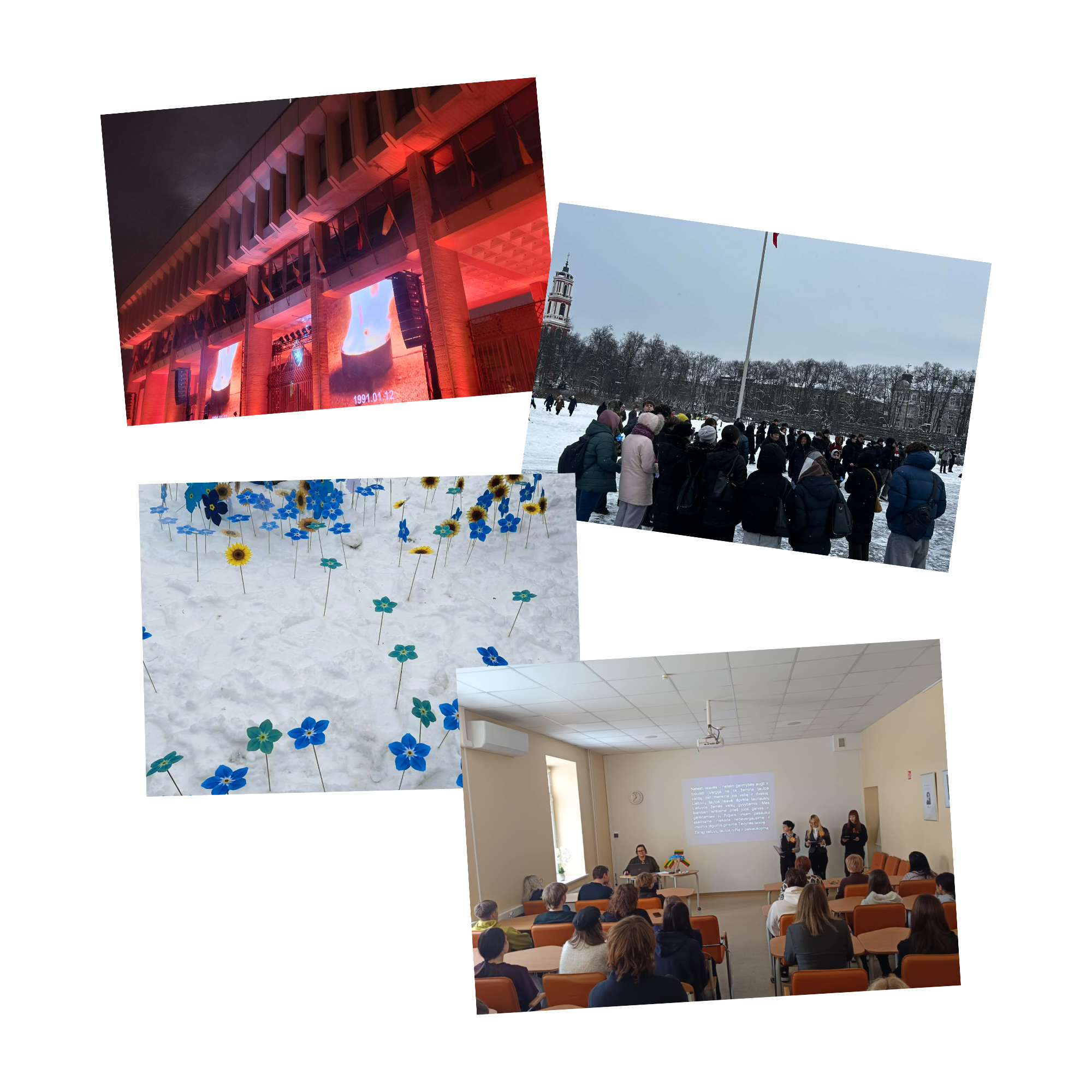 Sausio 13-osios išvakarėse prasminga veikla organizuota III B, D, IV B, D, E klasių mokiniams. Jie kartu su lietuvių kalbos ir literatūros mokytoja Oksana Aleknavičius bei etikos ir geografijos mokytoja Ilona Mikulėniene dalyvavo netradicinėje integruotoje lietuvių kalbos ir literatūros bei etikos pamokoje „Laisvė kaip vertybė: patirtis, atmintis, atsakomybė“, kuri vyko Seimo lankytojų centre ir Nepriklausomybės aikštėje. Mokiniai dalyvavo atminimo laužų uždegimo ceremonijoje, kuri sustiprino bendrystės ir istorinės atminties jausmą.